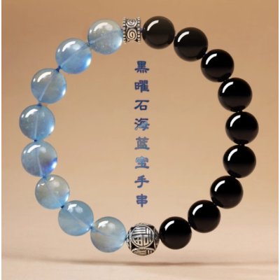 Aquamarine and obsidian bracelet, crystal necklace for women.