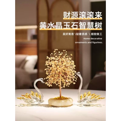天然玉石黄水晶发财树招财摆件客厅玄关家居装饰高档开业乔迁礼物
