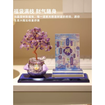 紫水晶发财树桌面招财小摆件工位玄学装饰摆台办公室好物紫气东来