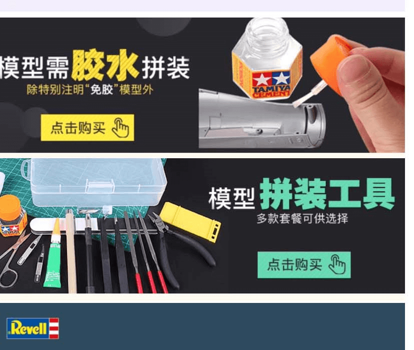 Plastic models are made of transparent glue, tools, paint, and other auxiliary materials.