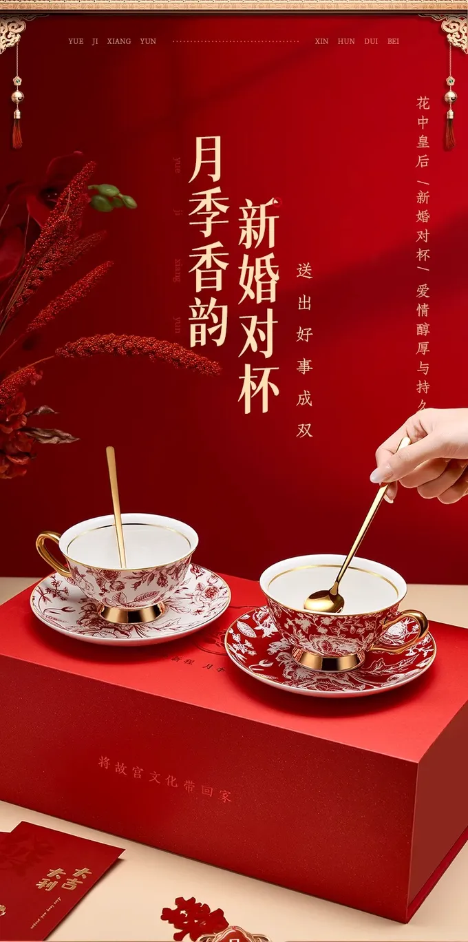 Palace Museum Coffee Cup Gift Box Wedding Couple Hand Gift High end Disc Cup Set