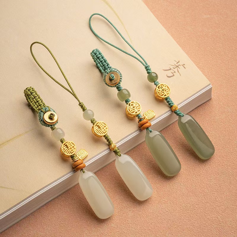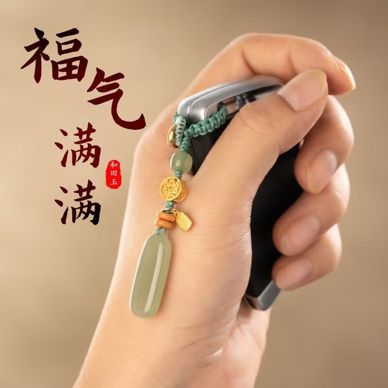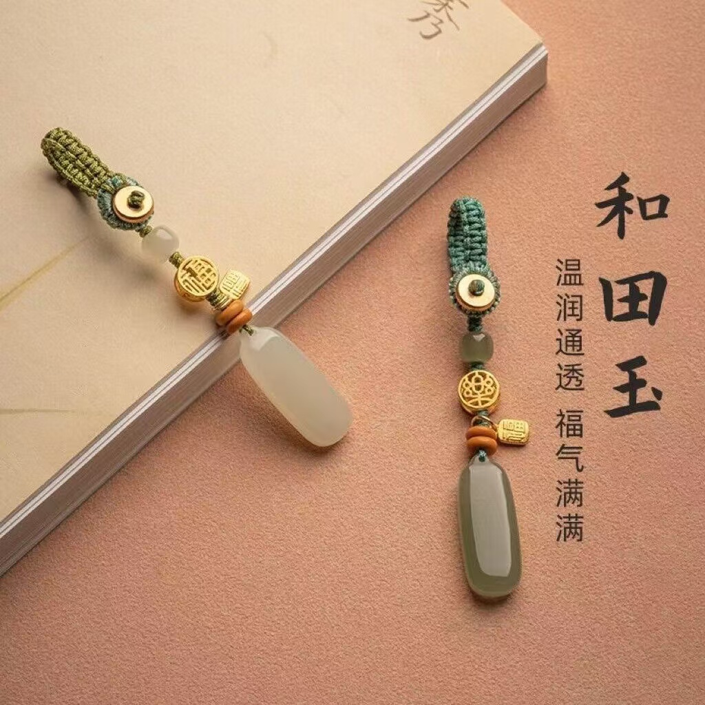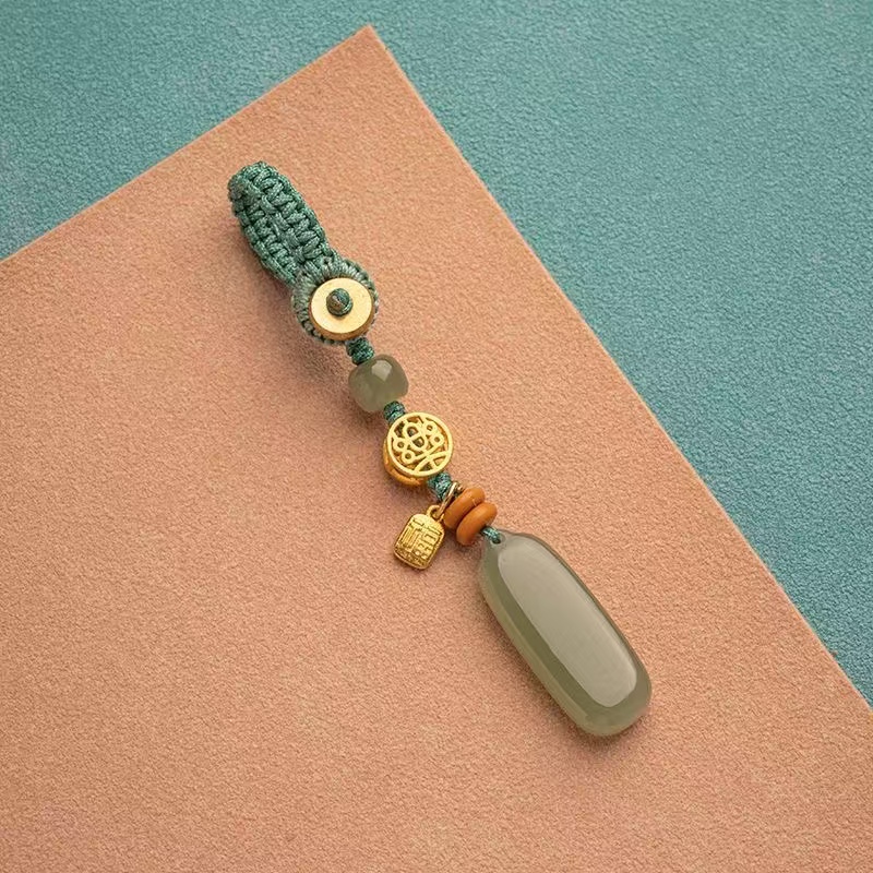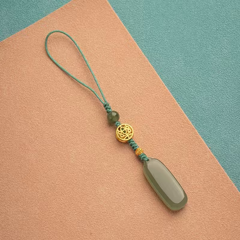 Natural Hetian Qingyu Peaceful Brand Key Pendant Car Keychain Green Jade Pendant for Men and Women