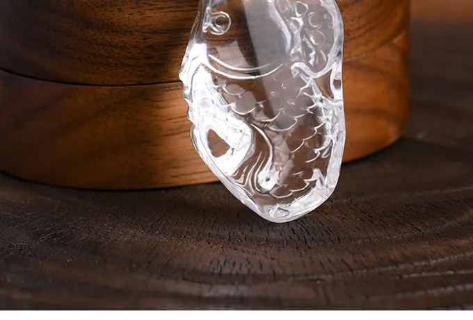 Natural white crystal anchovy pendant for men and women, crystal koi necklace pendant
