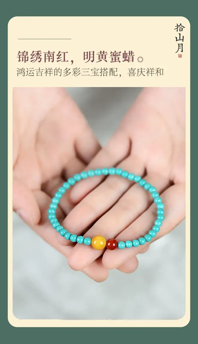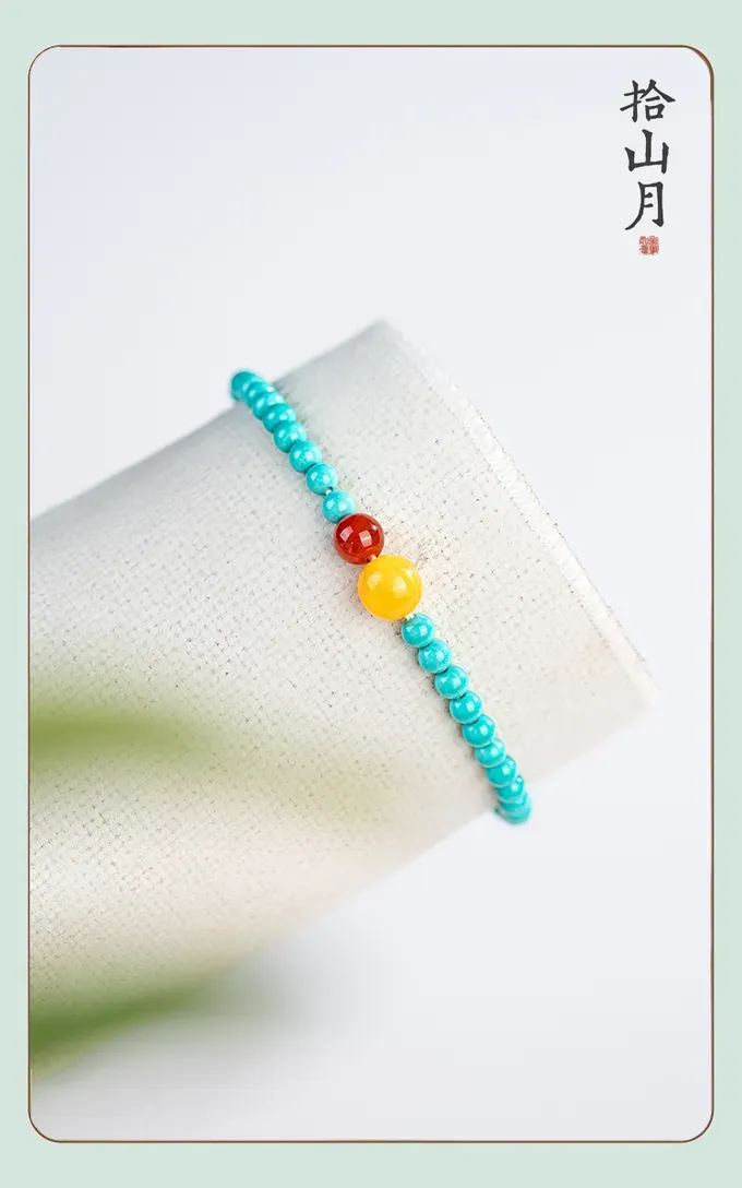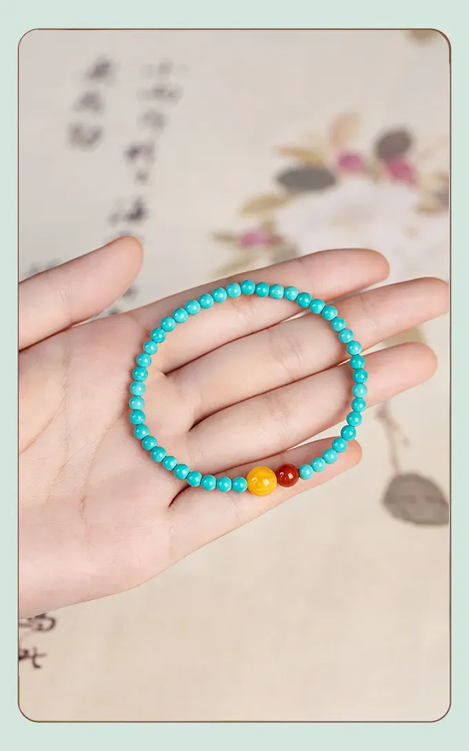 Turquoise Hand String Red Agate Honey Wax New Chinese Women’s Jewelry High Porcelain Fine Bracelet