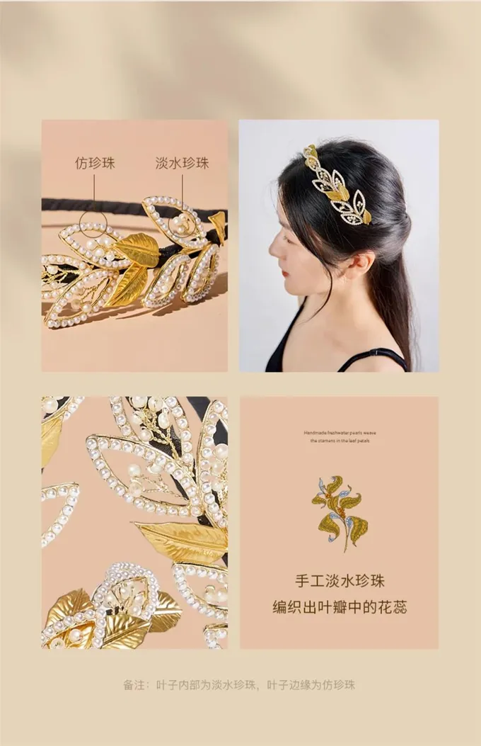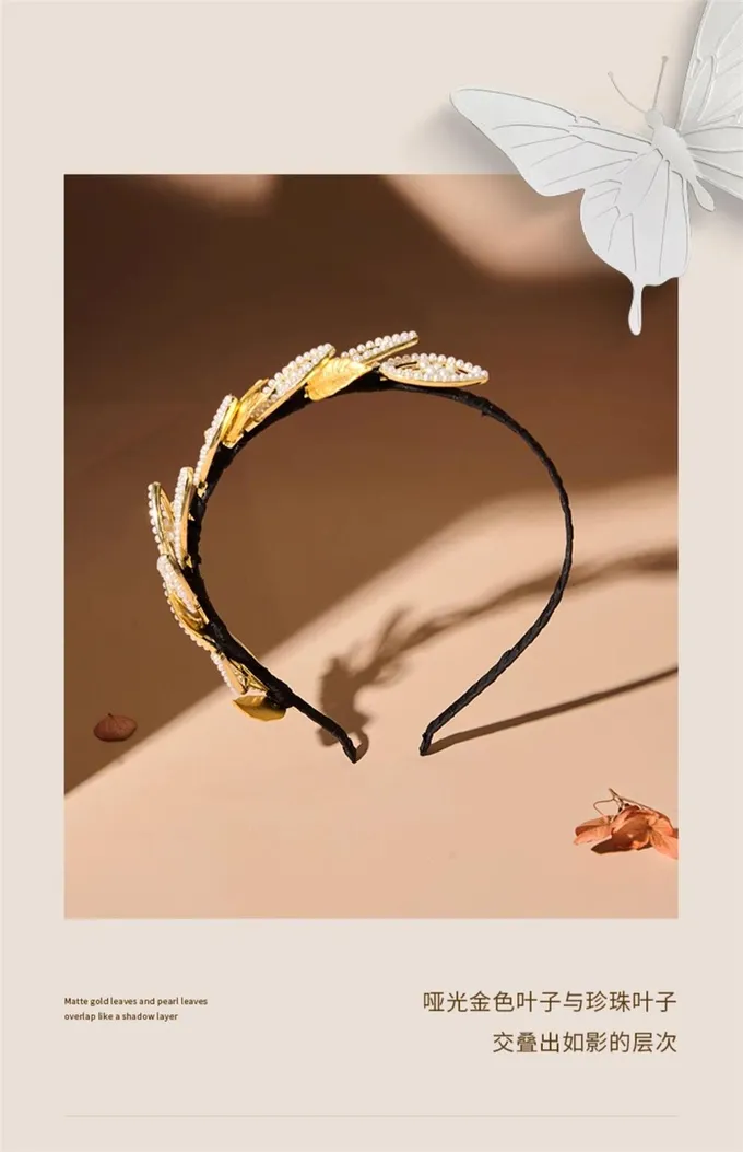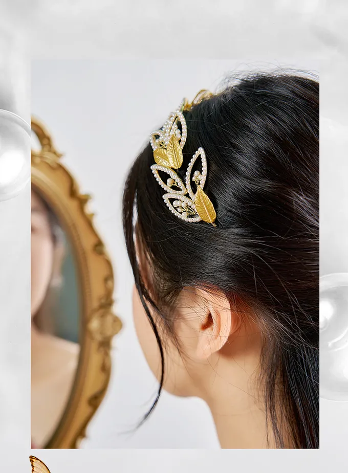 Oriental Dream Leaf Pearl Hair Hoop High Grade Hair Accessories