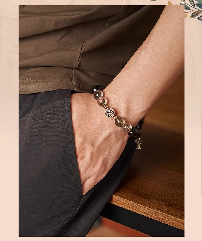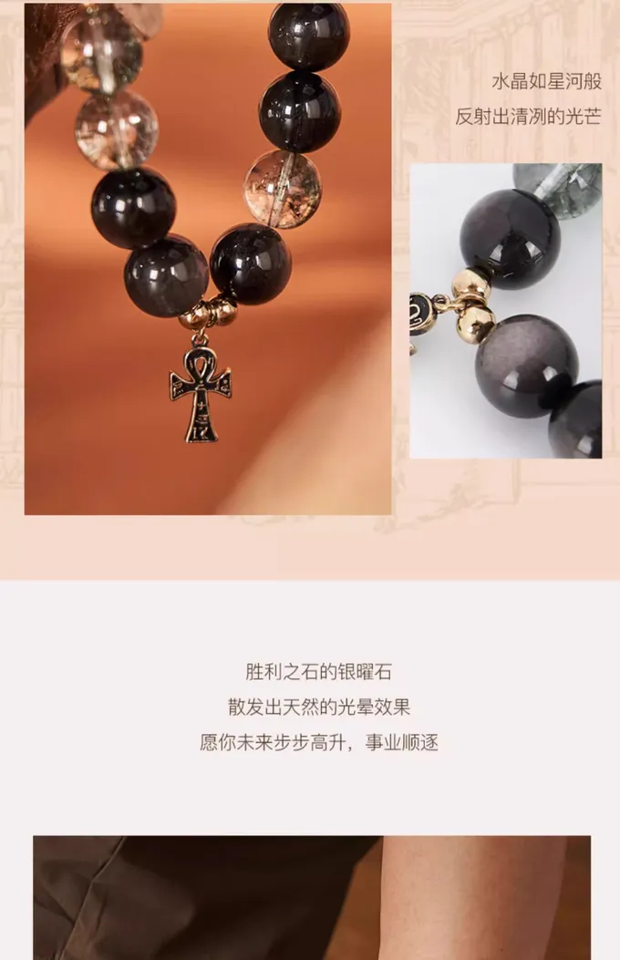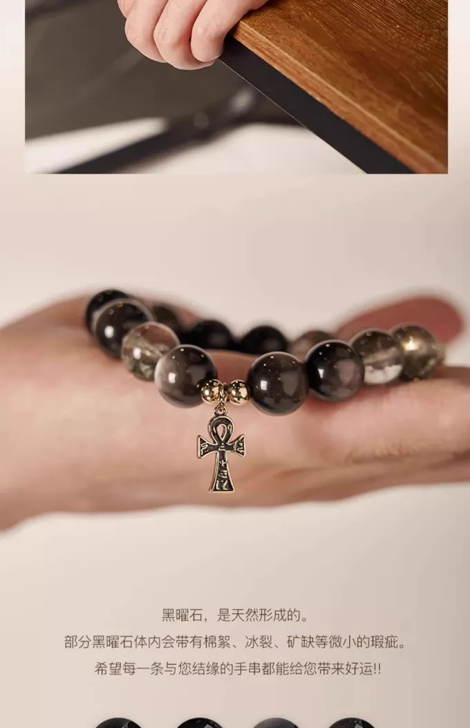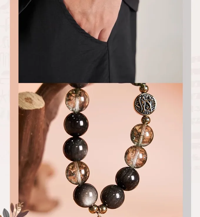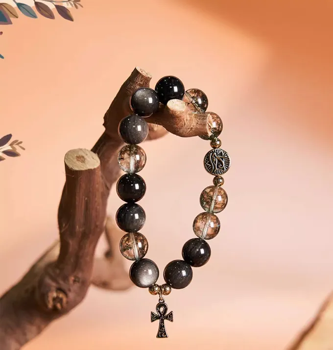 Anka silver obsidian bracelet for men and women, crystal bracelet