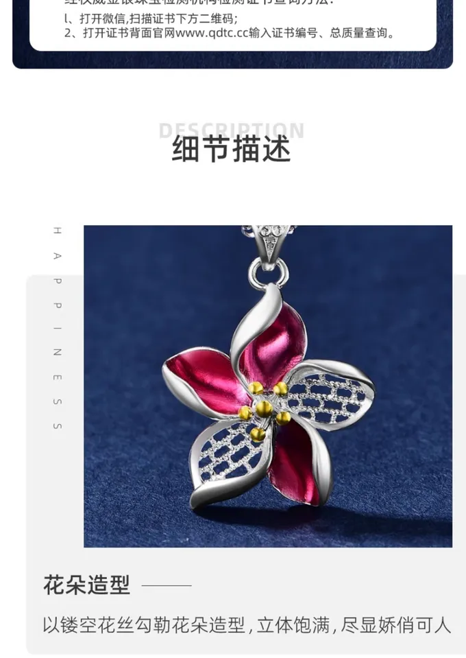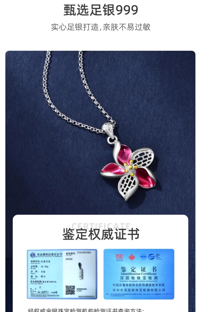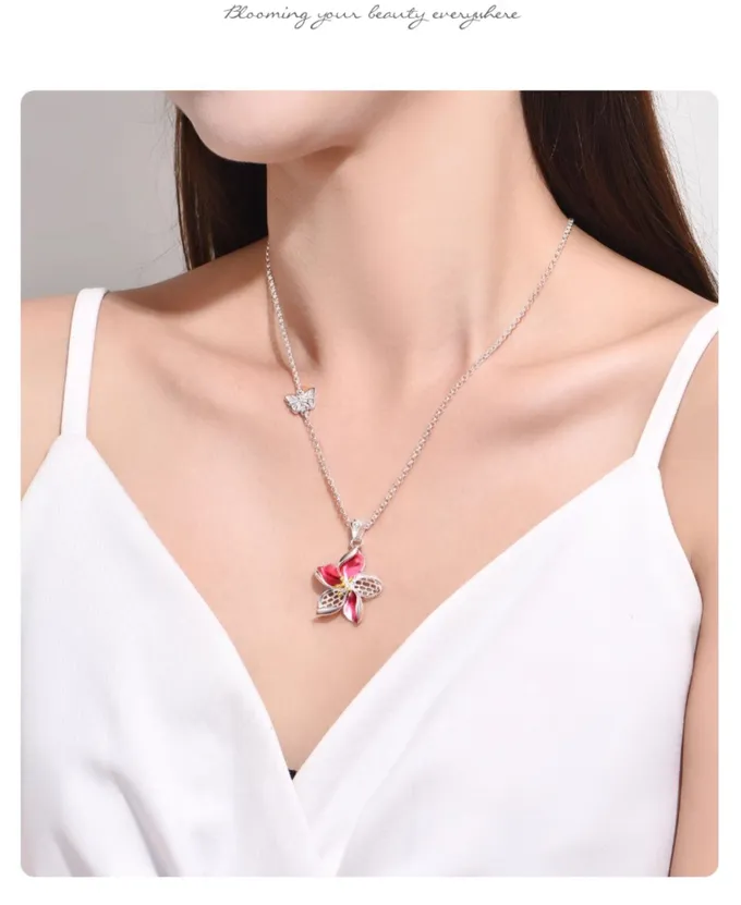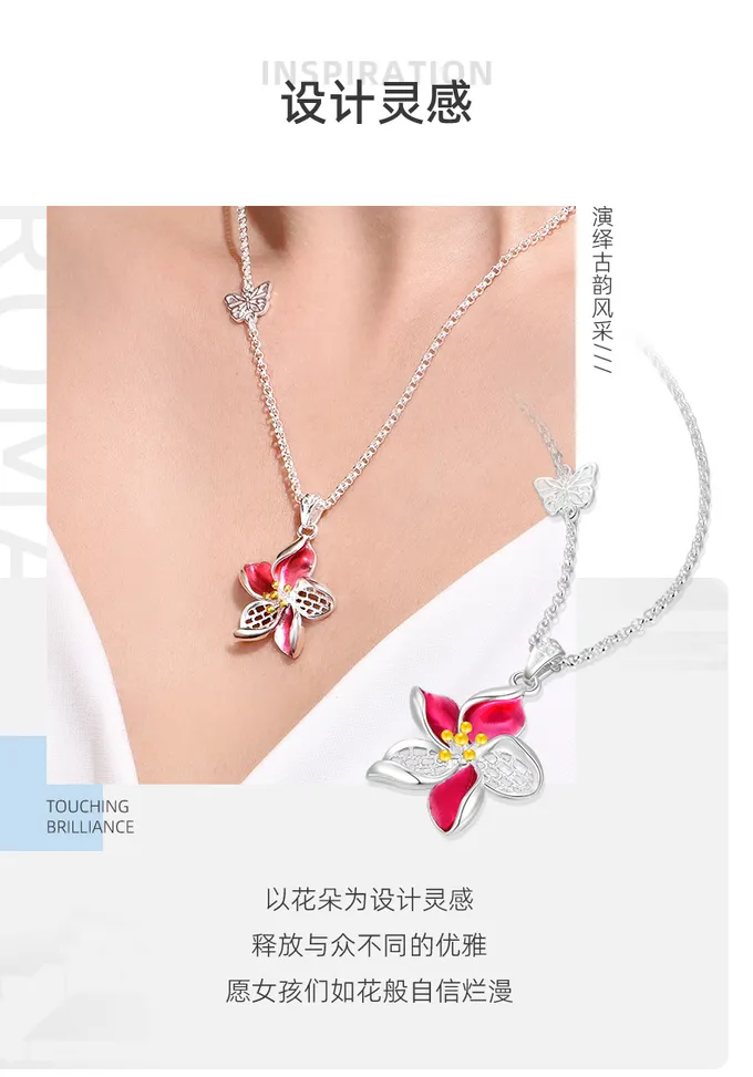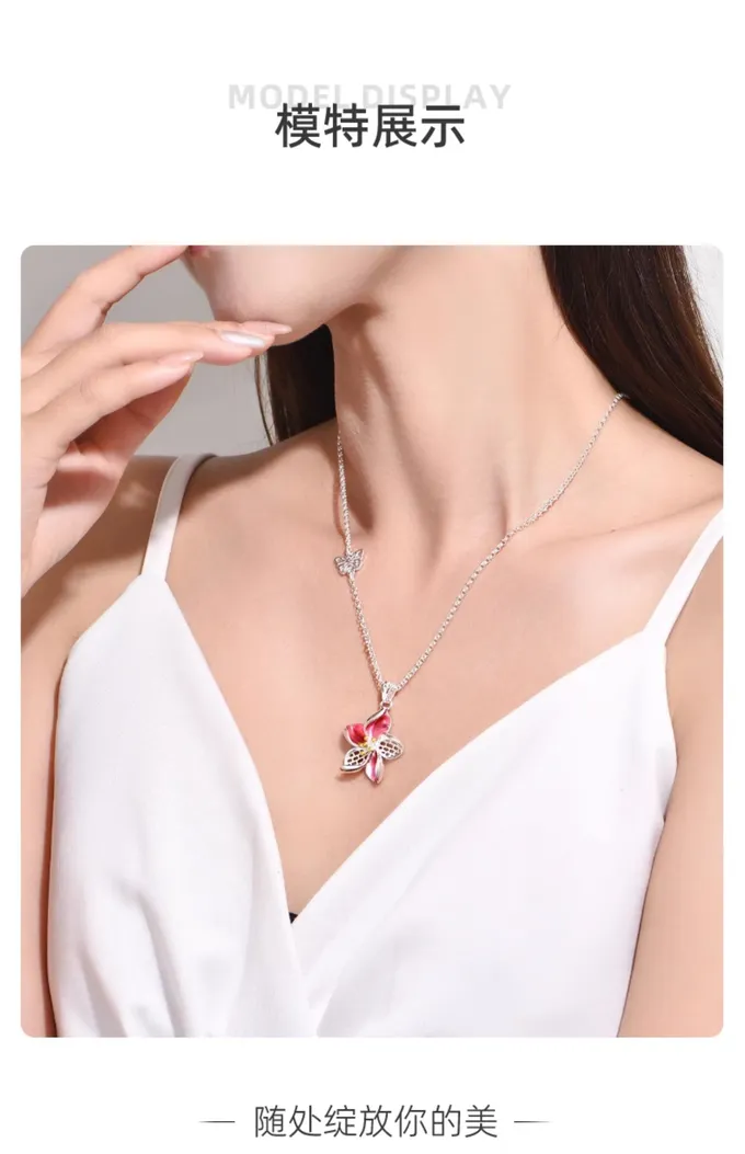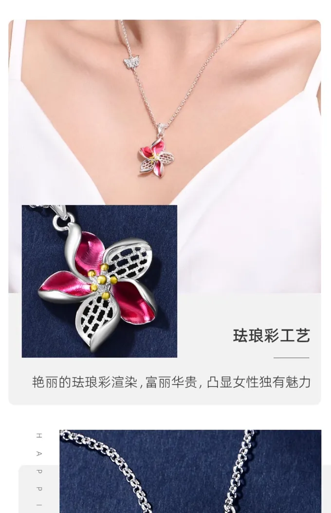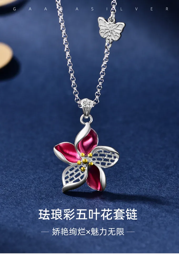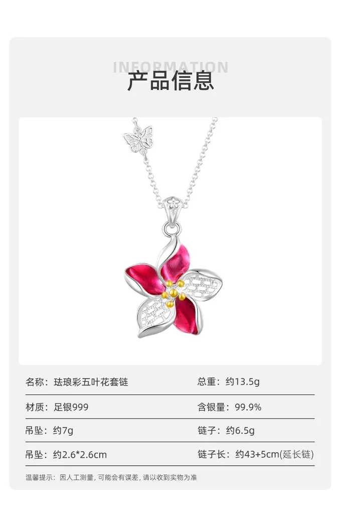 999 Silver Enamel Colorful Five Leaf Flower Set Chain Silver Pendant Necklace